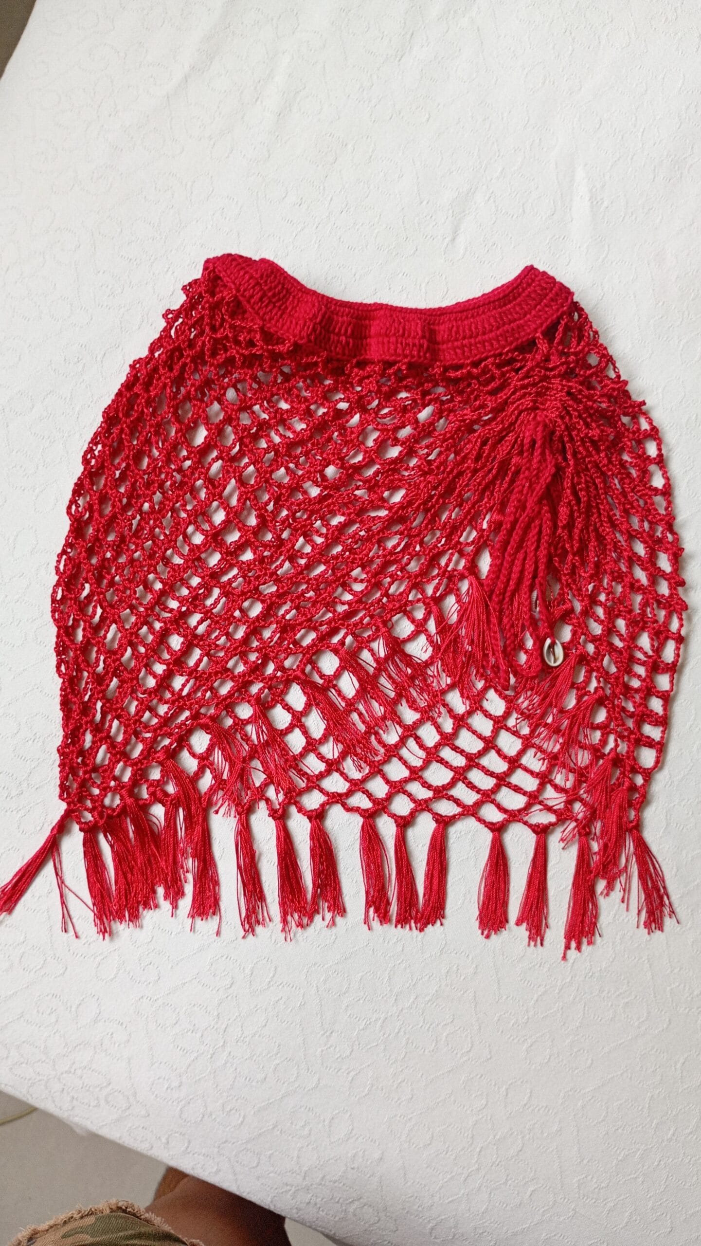 Feita à mão pela artesã Fernanda, cada detalhe é cuidadosamente produzido em fio 100% algodão, com aplicação de fio dourado, pérolas, conchas naturais e pequenas estrelas do mar. O resultado é uma peça sofisticada, versátil e encantadora — perfeita para acompanhar momentos de sol, mar e boas energias.